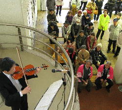 バイオリンは、階段の踊り場で演奏。