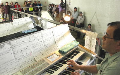 また、ロビーで演奏すると言うことで、鍵盤楽器は、2階の廊下に設置しています。