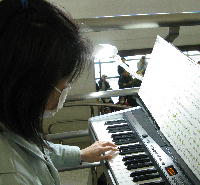 左の写真では、よくわかりませんが、PAもありませんので、イタちゃんの電子ピアノは、EL−900につないで、音を増幅。バイオリンの方は、マイクで音を拾って、ELS−01Cの方で、増幅しております。