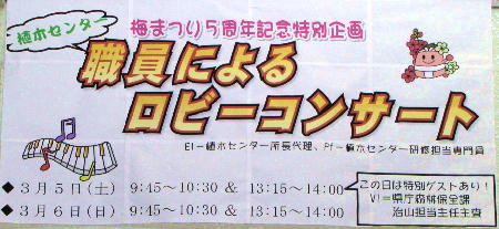 これは、たまたま大平サロンコンサートのメンバーでもある私とイタちゃんが職員として植木センターで働いてもいることから、職員によるロビーコンサートを提案したところ、主催者である稲沢市観光協会から快諾を得ることができ、実現の運びとなりました。