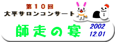 平成10年11月21日に第1回が開催されて、早いもので今回が10回目となりました。これも参加して下さる皆様方のおかげと感謝しております。 記念すべき第10回目は、この会が産声をあげた「ねむり姫の館特設コンサート会場」にて開催されました。 |