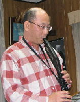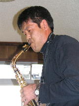写真は、パソコンで演奏させている曲にあわせてウィンドシンセサイザーを操るK1さんです。このYAMAHAWX11は、カシオペアが一世を風靡した時、話題になりましたよね。私も当時、欲しいと思ってました。