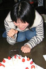 そして、そのお隣が、今回も大きなケーキを買ってきてくれたモーちゃん。運ぶの大変だったでしょ。ありがとうございました。