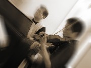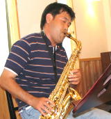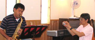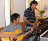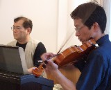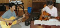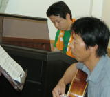 みんなが外で騒いでいる中、次回のコンサート用に打合せをしていた二人。