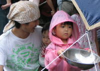 雨も子供達にとっては格好の遊び道具と化します。 |
