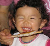 ジュニアは、雨のしずくを捕まえようとしてます。 |