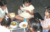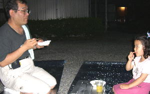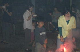 でも、花火をやっている向こうでは、まだ一生懸命焼きそばをパクついていたりして。。。。