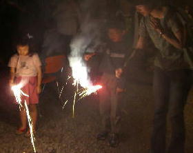夜のとばりが降りてくるのをまって、花火です。 花火はいいですねえ。童心に帰れます。