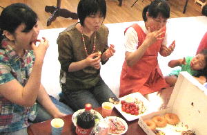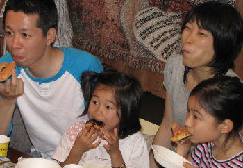 右の写真は、焼けるのを待っている子供達。