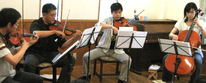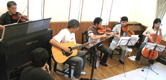 バイオリン2、ビオラ1、チェロ1、アコースティックギター1、アコースティックベース1。夢の共演なのだ。