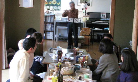 まず、恒例により酔っ払う前に私の演奏から…のつもりが、午前中、準備に汗をかいたため、思わず缶ビール一本空けてしまいました。