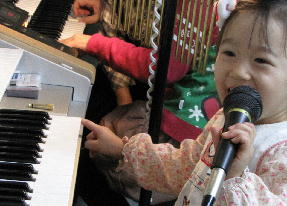 まず、お姉ちゃんのリコーダー演奏の前に、歌の披露がありました。 |