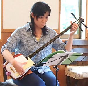 いままで、琴や沖縄の三線を持ち込んだ人はいましたが、三味線は、彼女が最初です。