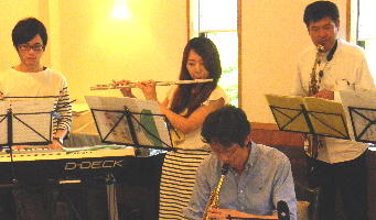 まずは、チェロとの二重奏。そして、クラリネットとの二重奏を聴かせて下さいました。 |