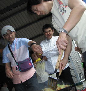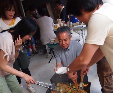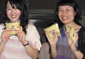 なぜか、焼きそばの袋を持ってごきげんなのが、ヒトミちゃんとカナエ画伯。