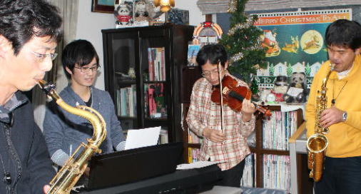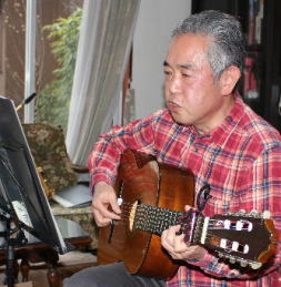 酔っ払う前に私の演奏です。でも、すでにピールを一口、いや、二口、いやいや三口くらいの飲んでおります。