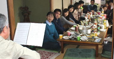 渋い歌声と歌詞に、聞き入っている面々です。