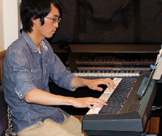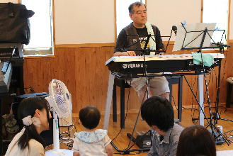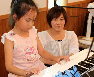 | なかなか鍵盤の前に座ってくれませんでしたけど、かなりの腕前だった、まりかちゃん。 暗譜して弾いてます。 譜面をおいても、見ないんですとは、お母さんの弁。 |
