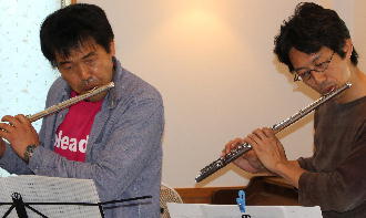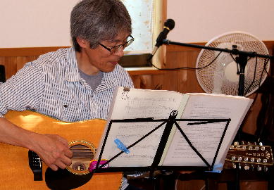 | 私もそうですけど、みんな譜面の扱いに苦労してます。今回は、窓を開け放っていたので、時々風で飛ばされました。 |