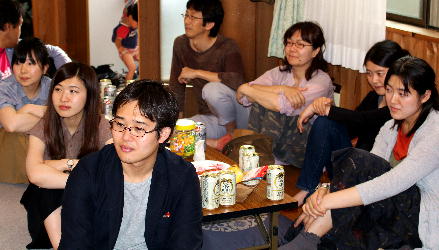 一番前で聞いているのが、今回初参加のトモユキくんです。 新採2年目とは思えない雰囲気ですねぇ。 学生時代はオーボエを吹いていたとのウワサも。 これを機に、末永いお付き合いをお願いしますね。 |