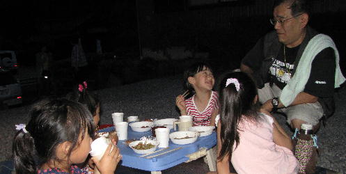 女子会か? クミ母さんは、今回も3人の子供を連れて参加してくださいました。 ホタルが見られて良かったねー。 |