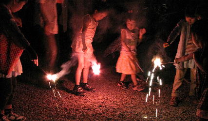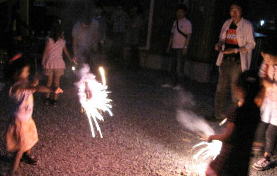| 暗くなってきたら、み〜んなで花火大会です。 |