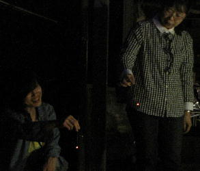 暗くてよくわからないかもしれませんけど、線香花火をしているモーちゃんとHappaさんです。 どっちが勝ったのかな? Happaさんは、色々と忙しく、なかなか最後まで参加できないのですが、今回は、ホタルをいっしょに見に行くことができました。 まったく飛んでなかったら、どうしようかと思いましたが、見ることができて、安心しましたよ。 |
