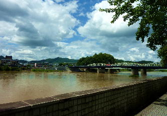 ここでは鵜飼いを見ることが出来ますが、この日は、前日までの雨が祟って、川が濁ったため中止だったようです。 |