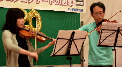 マナミちゃんとハル君のヴァイオリンデュオ演奏。 |