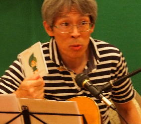 今回は、弾きながら歌も披露してくれました。 |
