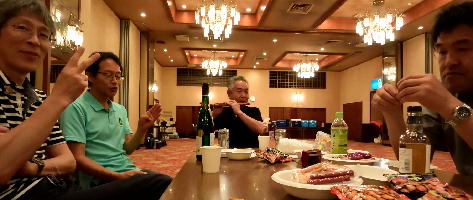 その結果、この会場での持ち込みパーティーが実現したわけですが、その後のホテル側との交渉、宿泊の手配、食材等の調達は、すべてハル君のご尽力による物です。
