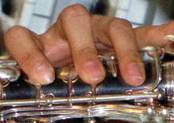 さてさて、ここで、演奏者の指に注目して写真を集めてみました。