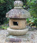 下の二枚の写真は、大平楽座横の母屋のそばに咲いていたアジサイと、可愛い灯籠です。