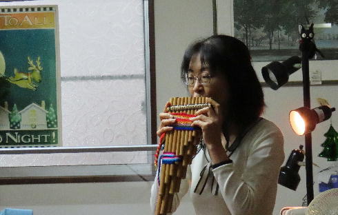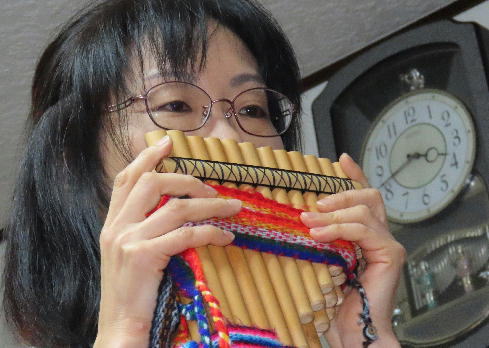 | 初参加の華さんは、クニさんからメンバーの楽器を聞いたとき、 サンポーニャだけは、どんな楽器かわからなかったそうな。 サンポーニャというのはスペイン語だったかな? 間違っていたらゴメン。先住民言語ではシークと言います。 西洋で言うパンフルートの一種ですね。 |