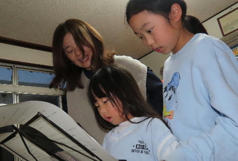 華さんによる、すみはちゃんへのピアノ講座であります。 驚いたのは、このわずかな時間で、ジブリの曲がなんとか格好が付くようになったこと。 華さんの教え方が上手いのか、すみはちゃんの才能か? |