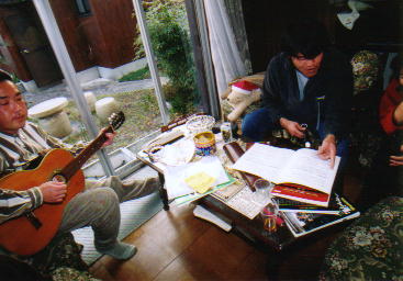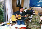 フォークギターを抱えて、なんかとってもご機嫌なお父さん。 |