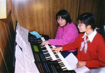 ピアノパートを分業して担当しているBunntaと琴弾きりえちゃん。