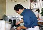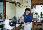 この日の朝、河岸で仕入れたワタリガニやエビやイカを包丁持参で料理してくれました。